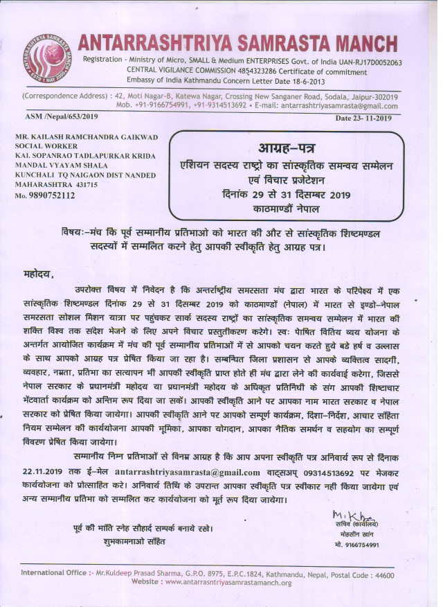 | 2015 | नॅशनल ईंटेग्रेशन कॅम्प तेलंगणा | नेहरू युवा केंद्र तेलंगणा (मेहबूबनगर) | राष्ट्रीय, तेलंगणा (मेहबूबनगर) |